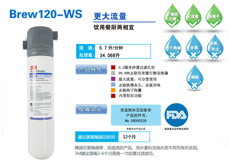3M BREW120-WS咖啡机冷饮机制冰机专用净水器邮件打印此页